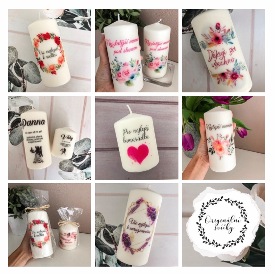 Děkovné svíčky, svíčky s gratulací, Velikonoce, Halloween, narození miminka, památeční svíčky a další příležitosti.